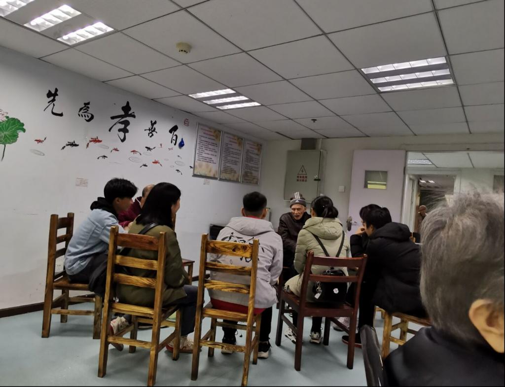 他们也围成一圈坐在一起,听老人讲述当前中国老龄现状