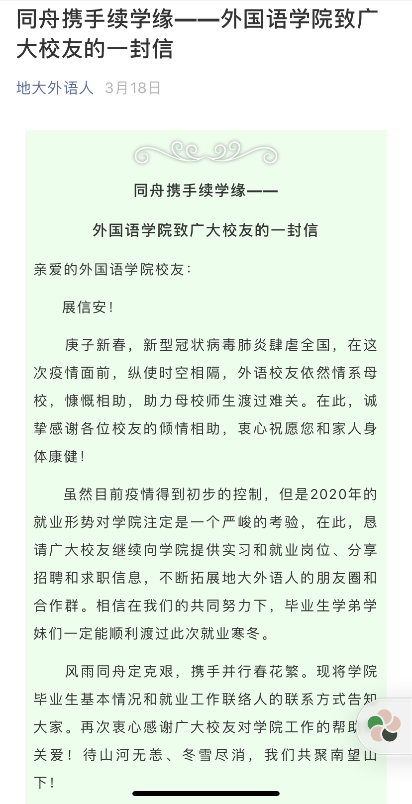 yl7703永利集团促进2020届毕业生充分就业工作方案        致校友的一封信