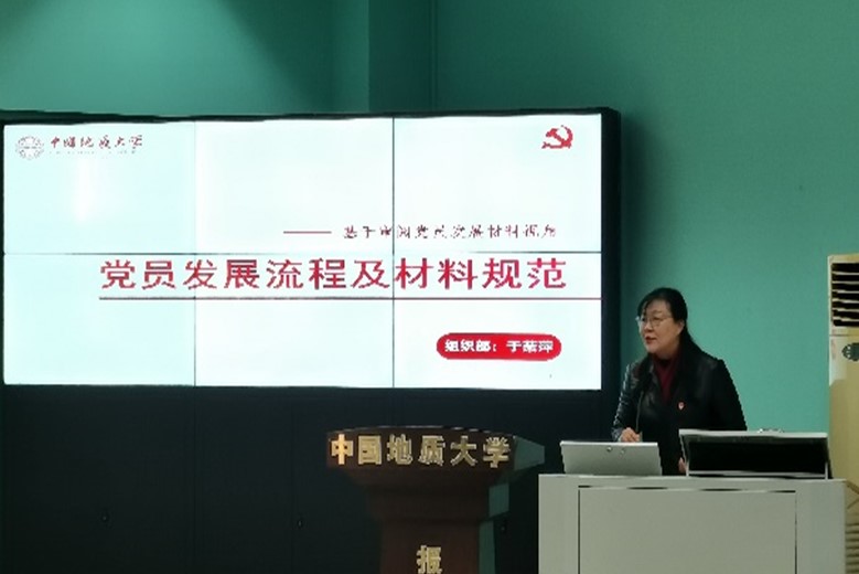 随后,于老师立足自身工作实践,从审阅党员发展材料的视角出发,向在场同志讲解党员发展流程及发展过程中规范材料的重要性,主要从发展党员工作总体要求、发展党员工作基本程序、党员发展材料类型、发展党员材料审查重点关注问题等方面展开培训。她解读了《中国共产党发展党员工作细则》、中国共产党发展党员工作流程图、学校《发展党员工作指导手册》等参考资料,细致全面地讲解了发展党员工作的5大阶段、25个步骤,特别针对学生党支部党员发展工作中的典型问题和现实困惑着重进行了讲解,并且多次强调,各支部在进行党员发展工作时,应当对党负责、对学校负责、对同志负责、对历史负责,遇到问题找源头,解决问题有依据。于老师的介绍亲切生动、深入浅出,用“青言青语”带领青年学生党员们理解、应用“党言党语”,让同学们既能高效提升党务工作水平,也更意识到党员发展工作对保持党的先进性和纯洁性的重要意义。