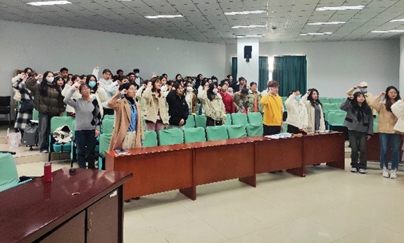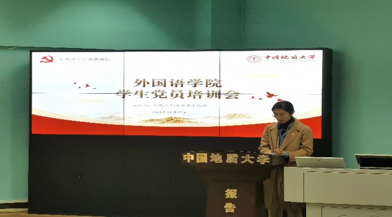 1127日下午,培训会在北一楼报告厅进行。会议伊始,举行本学期新发展党员入党宣誓仪式,于荣萍老师领誓。面向党旗的铿锵誓词,既让新发展预备党员经历政治新生、精神洗礼,也让老党员在重温誓词中,回望入党初心,恪守政治承诺。