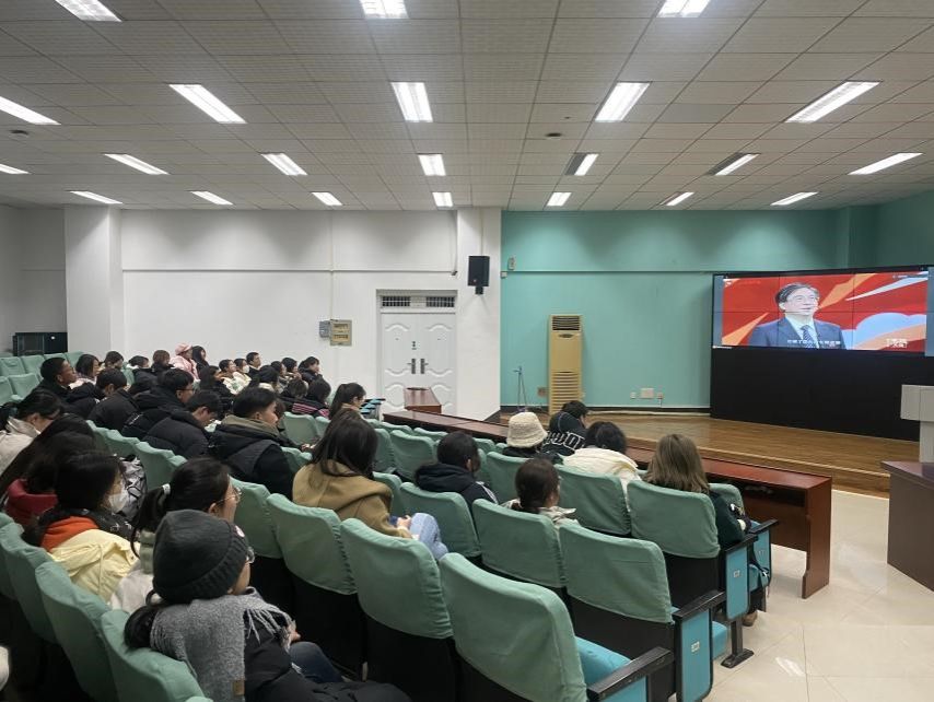 学院团委副书记邹蔚鹤与团委学生会、研会全体骨干,党团支部代表