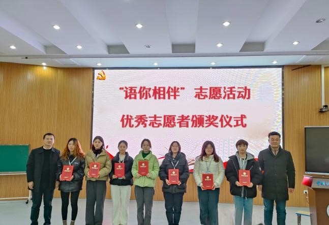 yl7703永利集团党委副书记余尚蔚为“语你相伴”志愿服务队授旗,并与周良军副校长共同为“语你相伴”志愿服务队优秀志愿者颁发荣誉证书。在一片热烈的掌声中,周良军副校长宣布“语你相伴”志愿服务队2024年支教活动正式启动。支教队队长曾令文表示:“接过旗帜就是一份责任,也是对学习成长的期待,获颁荣誉证书不仅是对我们过去努力的肯定,更是对未来工作的鞭策和激励。我们将以此为契机,继续发挥自己的专长和优势,为附属学校的孩子们带去更多的智慧和启迪,为支教事业贡献更多的力量。”