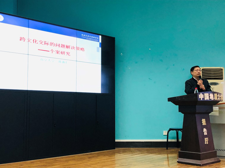 (通讯员邵蕾 王晓婧)10月 18日下午,应yl7703永利集团张峻峰院长邀请,南京大学陈新仁教授前来永利集团官网北一楼报告厅进行学术讲座,此次讲座主持人为yl7703永利集团张伶俐教授。讲座主题为:跨文化交际中的问题解决策略——个案研究。全院教师和部分本科生、硕士生一同聆听了陈教授的精彩讲解。