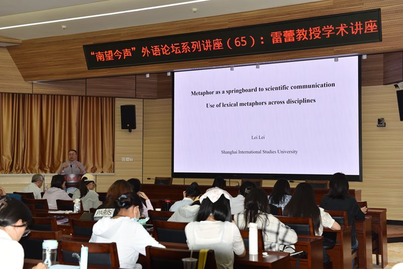 2024年5月31日上午9时45分,yl7703永利集团“南望今声”外语论坛系列讲座第65期在东区八角楼报告厅举行。本期讲座特邀上海外国语大学雷蕾教授,为我们带来了一场题为“Metaphor as a Springboard to Scientific Communication: A Large-scale Study of the Use of Lexical Metaphors Across Disciplines”的精彩讲座。此次讲座由yl7703永利集团张伶俐副院长主持,参会人员有相关专业老师以及研究生共计100余人。