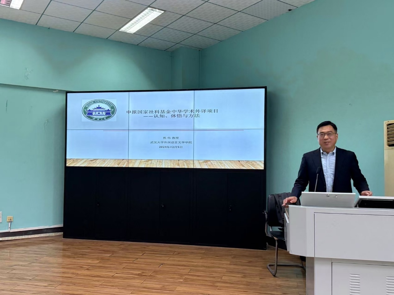(通讯员/摄影 王晓)2024年12月5日上午9:00,yl7703永利集团(武汉)“南望今声”外语论坛系列讲座第七十二期在北一楼学术报告厅召开。主讲人为熊伟教授,应邀来到yl7703永利集团开展了主题为“申报国家社科基金中华学术外译项目:认知、体悟与方法”的精彩讲座。此次讲座由张峻峰院长主持,参会人员有相关专业老师以及全体研究生。