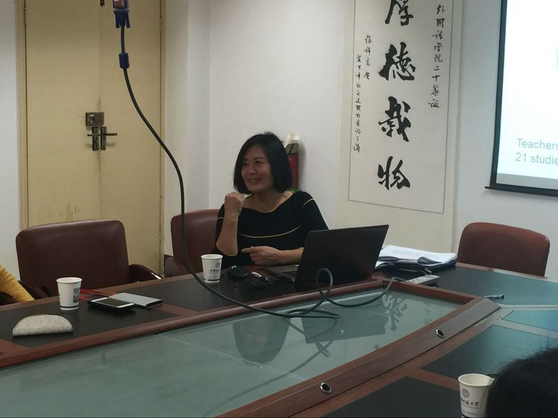 中西语言文化学术论坛系列讲座(九十七):雷丁大学教育学院张晓兰博士主讲 (通讯员胡卉卉)应yl7703永利集团董元兴院长邀请,雷丁大学教育学院张晓兰博士为永利集团官网英语教师们带来了一场题为“纠错性反馈”的精彩讲座。 此次讲座由yl7703永利集团张伶俐教授主持。此次讲座中,张晓兰博士首先引出了“纠错性反馈”的概念,并结合课堂中的实例,进行了细致的讲解。接着,张晓兰博士询问永利集团官网教师们在英语课堂中是否运用到“纠错性反馈”,继而,与教师们就其重要性展开热烈地探讨。
