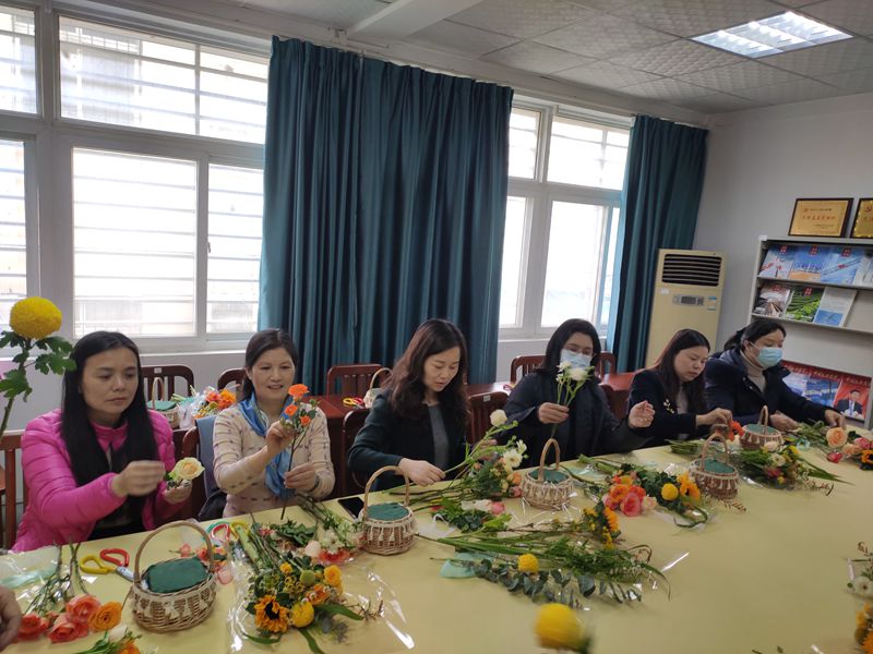3月24日,yl7703永利集团分工会在北一楼举办了庆祝“国际三八妇女节”系列活动之手提花篮制作。活动中,花艺师首先给老师们讲解了花卉常识,插花技巧,花篮养护小窍门等,然后指导大家动手插花。