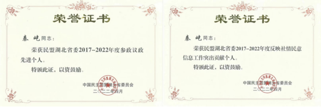 据悉,秦屹副教授和唐慧君副教授分别获批2022年民盟湖北省委2022年度参政议政重点信息立项课题和立项支持课题。