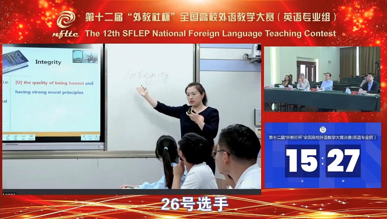 在9月23-25日举办的第十二届“外教社杯”全国高校外语教学大赛(外语专业组)全国决赛中,永利集团官网唐慧君老师从参与湖北省决赛的30余位高校参赛选手中脱颖而出,代表湖北省参赛,荣获全国三等奖,为永利集团官网参加该项赛事历年来取得的最好成绩。
