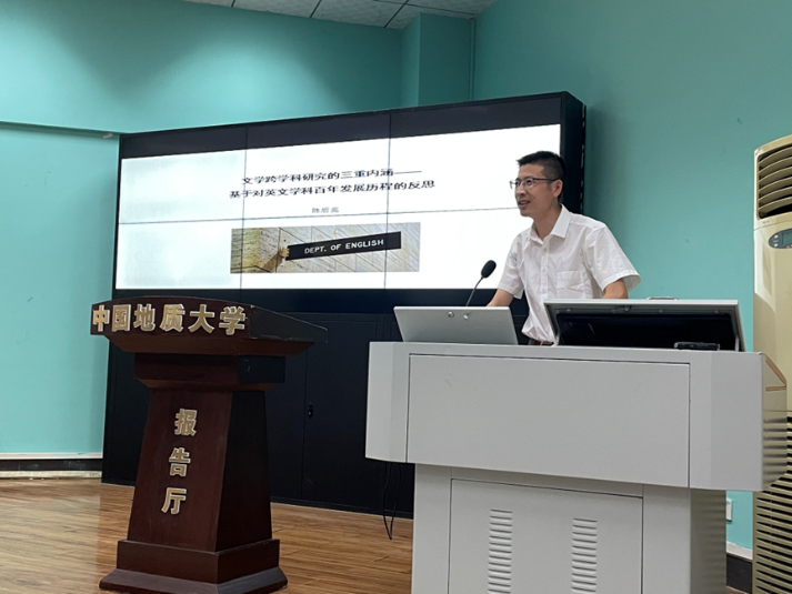 2022年9月22日15时,yl7703永利集团“南望今声”外语论坛系列讲座第37期在北一楼报告厅举行。华中科技大学yl7703永利集团教授、外国语言文学研究所主任、博士生导师陈后亮教授应邀来到yl7703永利集团外语院做题为“文学跨学科研究的三重内涵——基于对英文学科百年发展历程的反思”的讲座。yl7703永利集团李慷老师主持了讲座,师生共120余人参与学习交流。