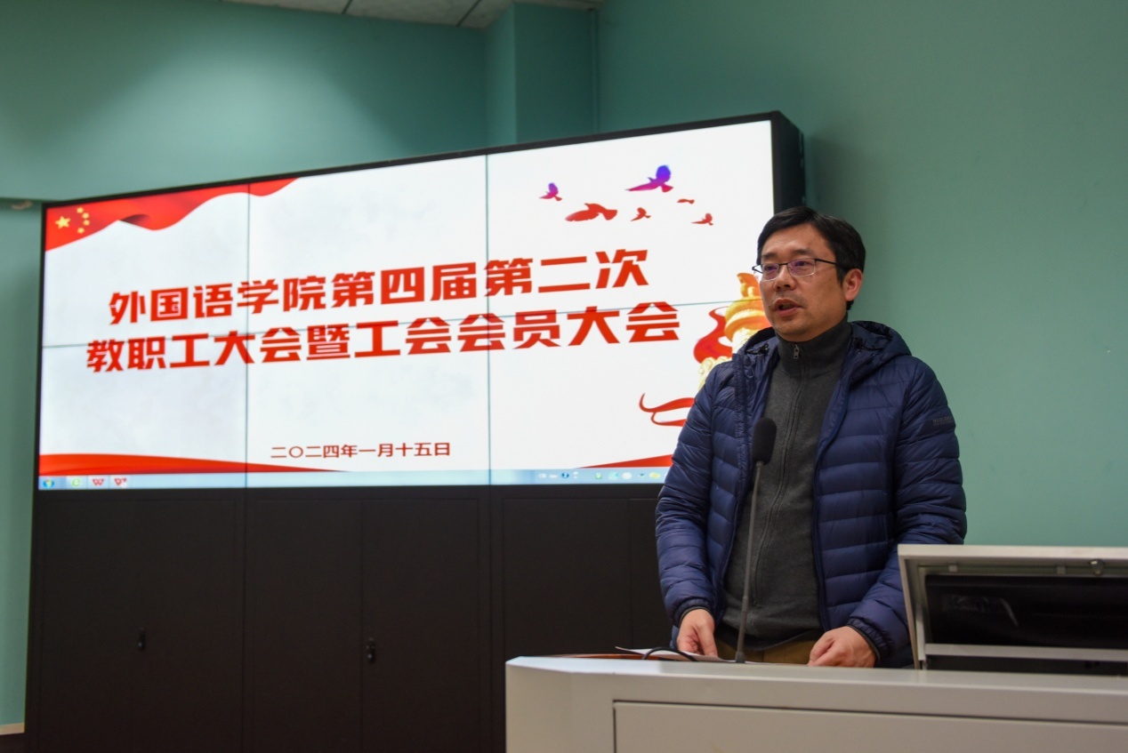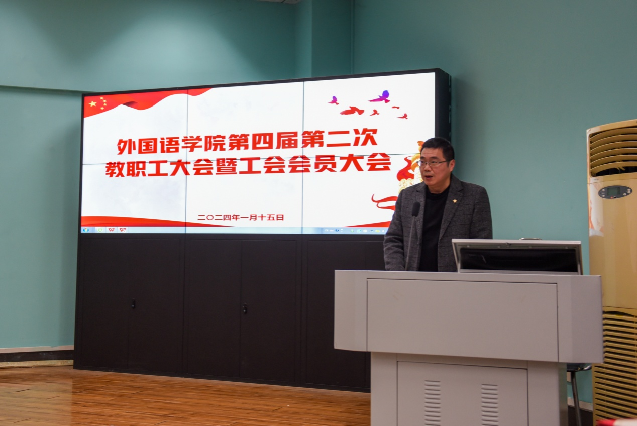 (通讯员邹蔚鹤 摄影戴薇 严蕾)2024年1月15日,yl7703永利集团第四届第二次教职工大会暨工会会员大会在北一楼学术报告厅隆重召开。学校党委副书记王甫出席大会并讲话。大会由院党委书记刘世勇主持。
