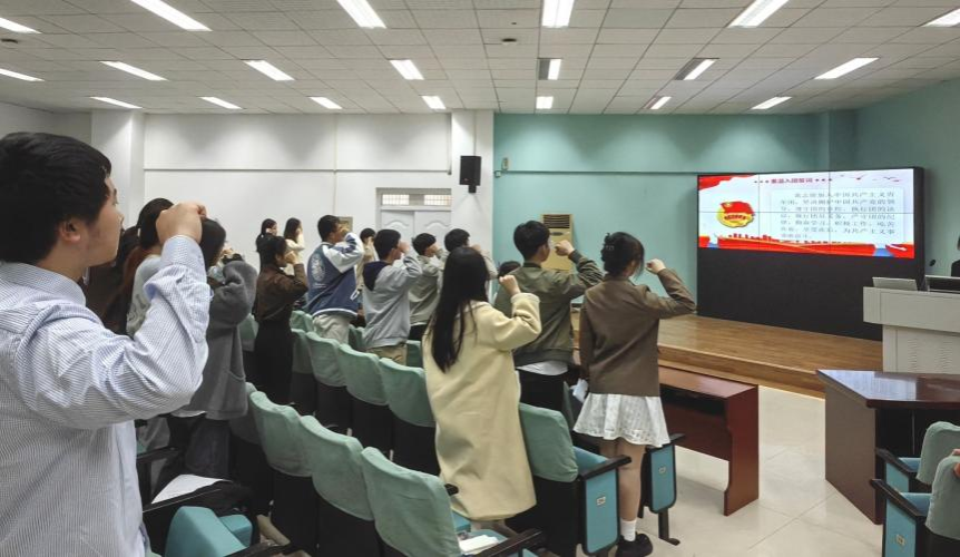 本次答辩由yl7703永利集团团委组织部牵头组织开展,学院团委副书记邹蔚鹤、辅导员蒋贝蓓、兼职团委副书记叶荣凯担任评委、学院学生党员代表、各团支部青年团员代表共同参与此次答辩评分。活动开始,主持人带领全体与会人员齐唱团歌、重温入党誓词。待宣誓毕,主持人介绍答辩规则,本次yl7703永利集团2023年度“五月的鲜花”五四红旗团支部评选活动正式开始。