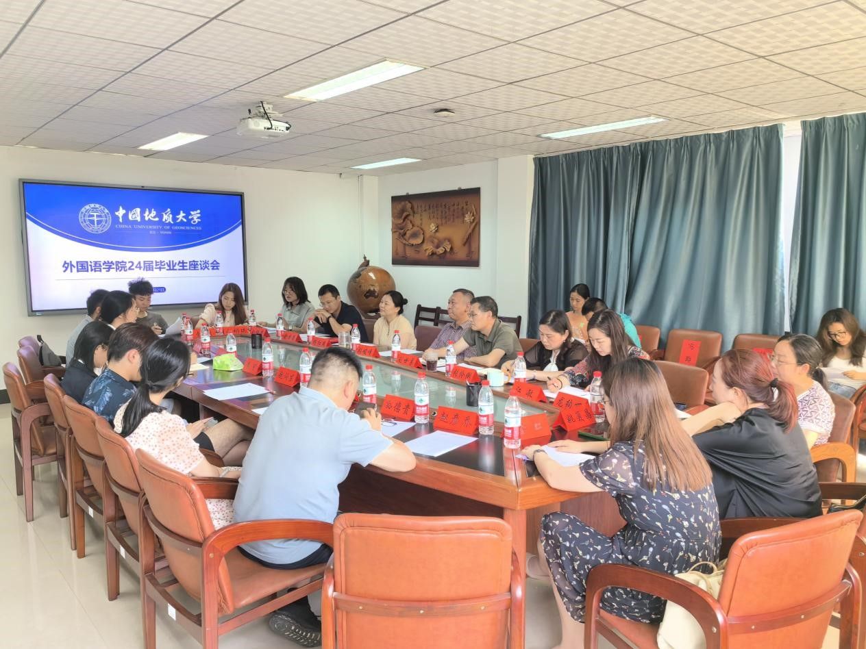 座谈会上,同学们踊跃发言,围绕人才培养、就业指导、教育管理等方面积极建言献策。李可同学谈到,语言是消除偏见的工具,是在国际交流合作和斡旋的艺术,是外交领域捍卫国家利益的利器。科技的发展将给语言工作者带来巨大挑战,但也推动我们更深入挖掘语言的深层次内涵,这四年的学习和生活在我们人格完善的重要时期镌刻下了独特的外院印记,毕业人生旅途的中转站而不是终点站,我们将带着在地大外院的所学和所感,带着老师的期望和祝福,开启人生的下一篇章。唐湘林同学谈到,学校和学院为我们提供了全面发展的平台。希望学院持续大力帮助学生了解和接触就业市场,促进学生提前做好就业认知与准备,使其在未来的职业道路上更加从容自信。通过回顾在矿大求学期间的成长与收获,同学们深切表达了对母院悉心培养的感恩之情,衷心祝愿母院事业发展蒸蒸日上。赵润东同学表示自己已经是在学校学习7年的“二度毕业生”了,在外语学院的七年生活转瞬即逝,十分感谢学院对他的培养,祝愿外语学院发展越来越好,祝愿各位老师桃李满天下,在未来希望都可以遇见更好的彼此。杜熙熙同学表示非常感谢yl7703永利集团的各位老师,给她们提供了很专业的指导,并参加了很多研究方向相关的学术会议。基于硕士研究生阶段的学习与积累,出于对学科的喜爱,并综合考虑未来就业规划,她选择继续攻读博士学位,同时很感谢各位老师给我提供的指导与建议,让她可以顺利申请到博士学位。