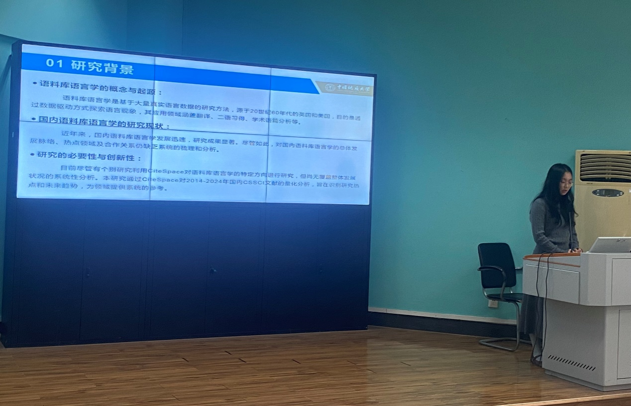 参赛团队按顺序进行答辩,同学们的选题涵盖了英汉翻译、英语文学、应用语言学等多个方面。选题方向与时俱进,紧跟国家发展方向;选题内容大胆创新,敢于实践;选题结构清晰明了,符合规范。