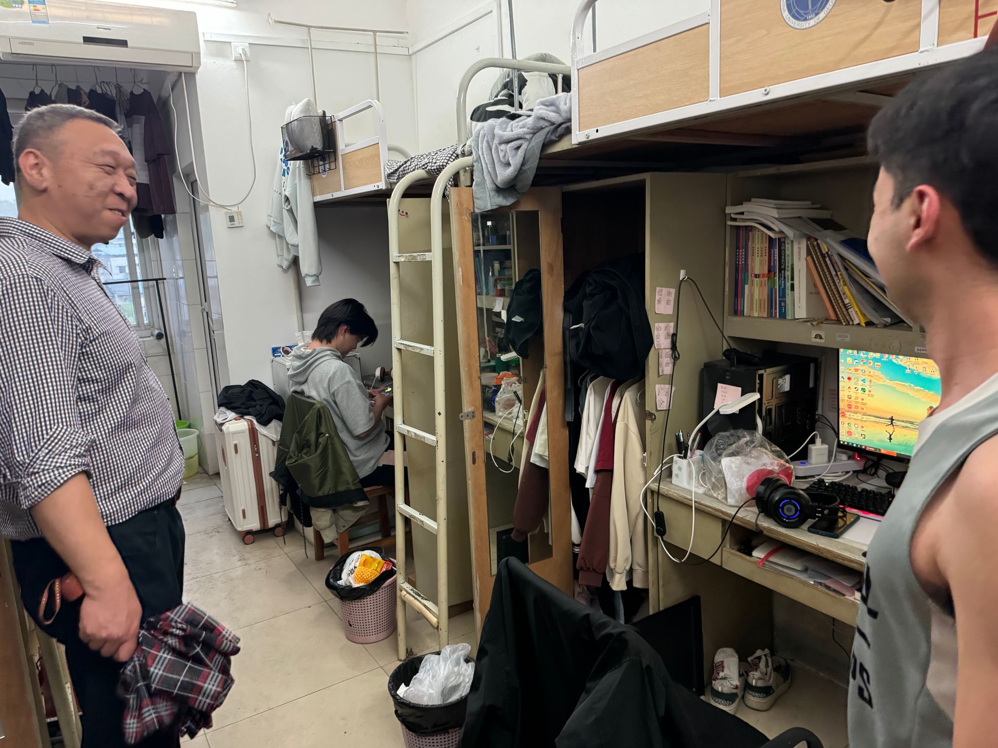 在学生宿舍走访过程中,学院领导与同学们亲切交流,详细询问他们的学习、生活情况,听取他们对学习生活和学院发展的建议和意见,特别强调要树立大安全观。领导们反复叮嘱同学们要强化安全意识,时刻保持警惕,注意防火、防盗、防诈骗等。