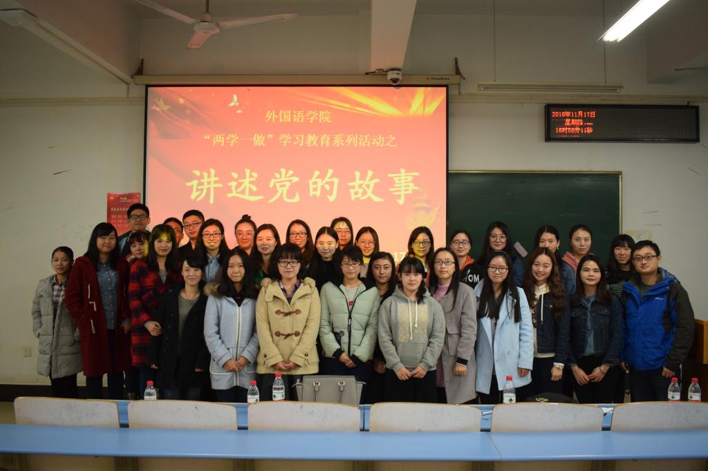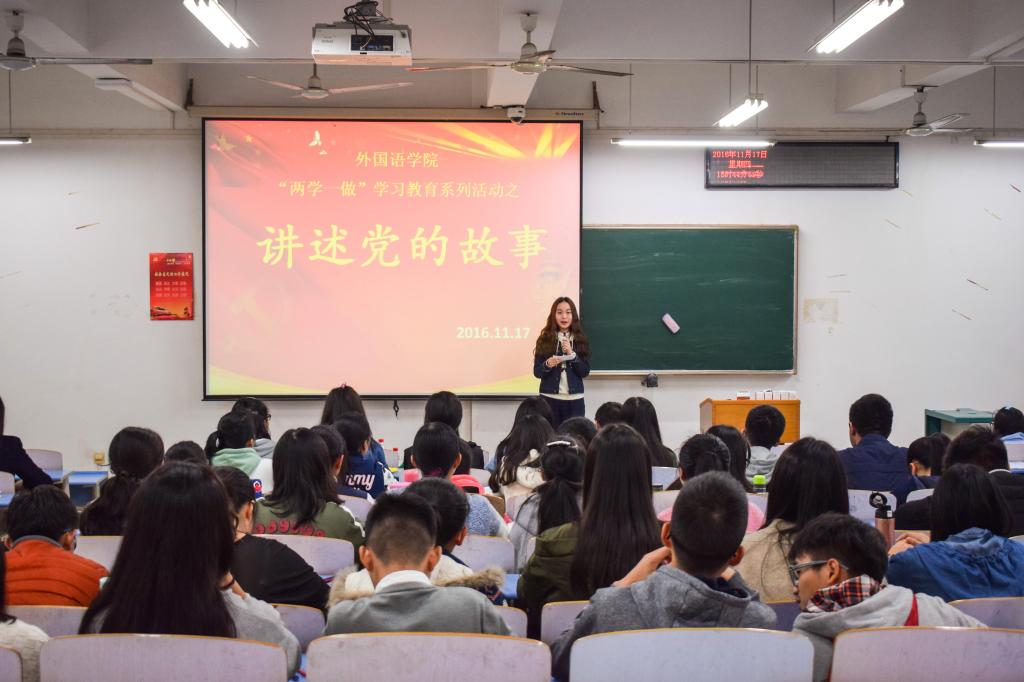 (通讯员罗颖)11月17日下午,yl7703永利集团“两学一做”学习教育系列活动之“讲述党的故事”比赛在北区综合楼206举行,本次活动由yl7703永利集团主办,yl7703永利集团本科生第一党支部承办,yl7703永利集团英语系教工党支部书记江敏,学工组李海涵、宁蒙担任本次比赛的评委,本科生第一党支部吴佩遥担任主持人,yl7703永利集团全体学生党员及yl7703永利集团第十九期入党积极分子参加了本次活动。