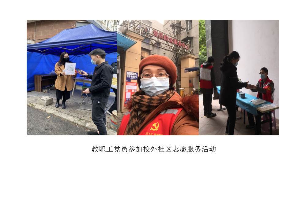 (通讯员宋干锋)本学期开学伊始,全国新冠肺炎疫情仍有发生,为确保校园平安,学校党委将疫情防控作为重要政治任务来抓,精心安排疫情防控工作,组织党员下沉社区开展志愿服务等。yl7703永利集团党委积极响应学校党委号召,组织教工党员参加疫情防控,党员干部带头,党员们积极行动,踊跃报名,发挥党员先锋模范作用,为学校筑牢校园平安防线。截至424日,共计100余人次参加核酸检测等志愿服务,累计服务时长达350余小时。其中孙来麟、李孝奎、周艳、俞仑燕、戴薇、董成见、宋干锋、王国念、刘敏、赵英科、张莉等同志多次参加校内疫情防控志愿者工作,为广大师生做出表率。