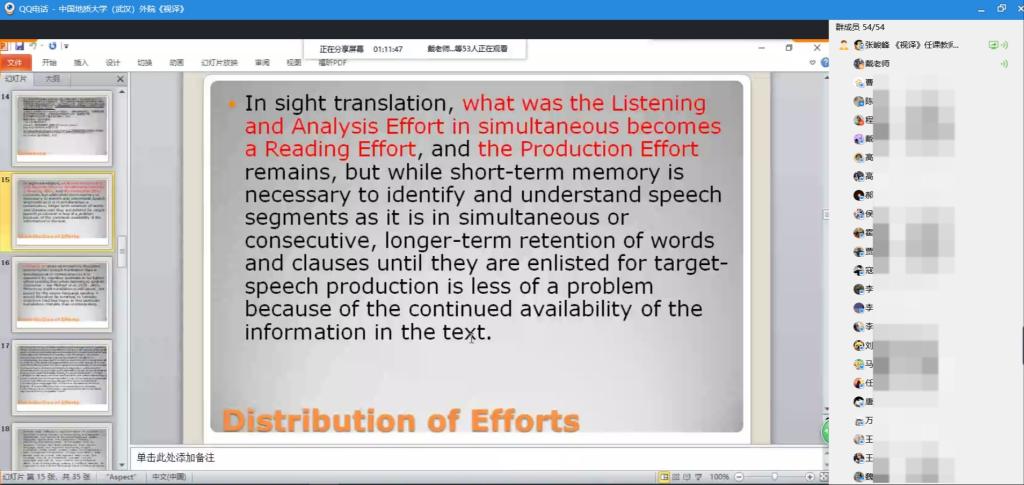 为保证研究生教育教学质量,1月31日,学院发布《yl7703永利集团2020年上半年疫情防控期间外语专业研究生网络教学组织工作方案》,对学生和任课教师提出线上教学相关要求,任课教师积极响应要求,及时建立QQ或微信课程群,并根据课程需要,分别选择“课堂派、雨课堂、超星学习通、QQ直播”等平台进行线上授课准备。学院于2月2日排查统计研究生是否存在无法参加网,课学习的情况,确保每位学生能顺利、及时参加每门课程的学习。学院研究生教学管理人员全力为师生做好各项保障服务工作,远程在线帮助师生解决各种问题,为“停课不停教、停课不停学”保驾护航。